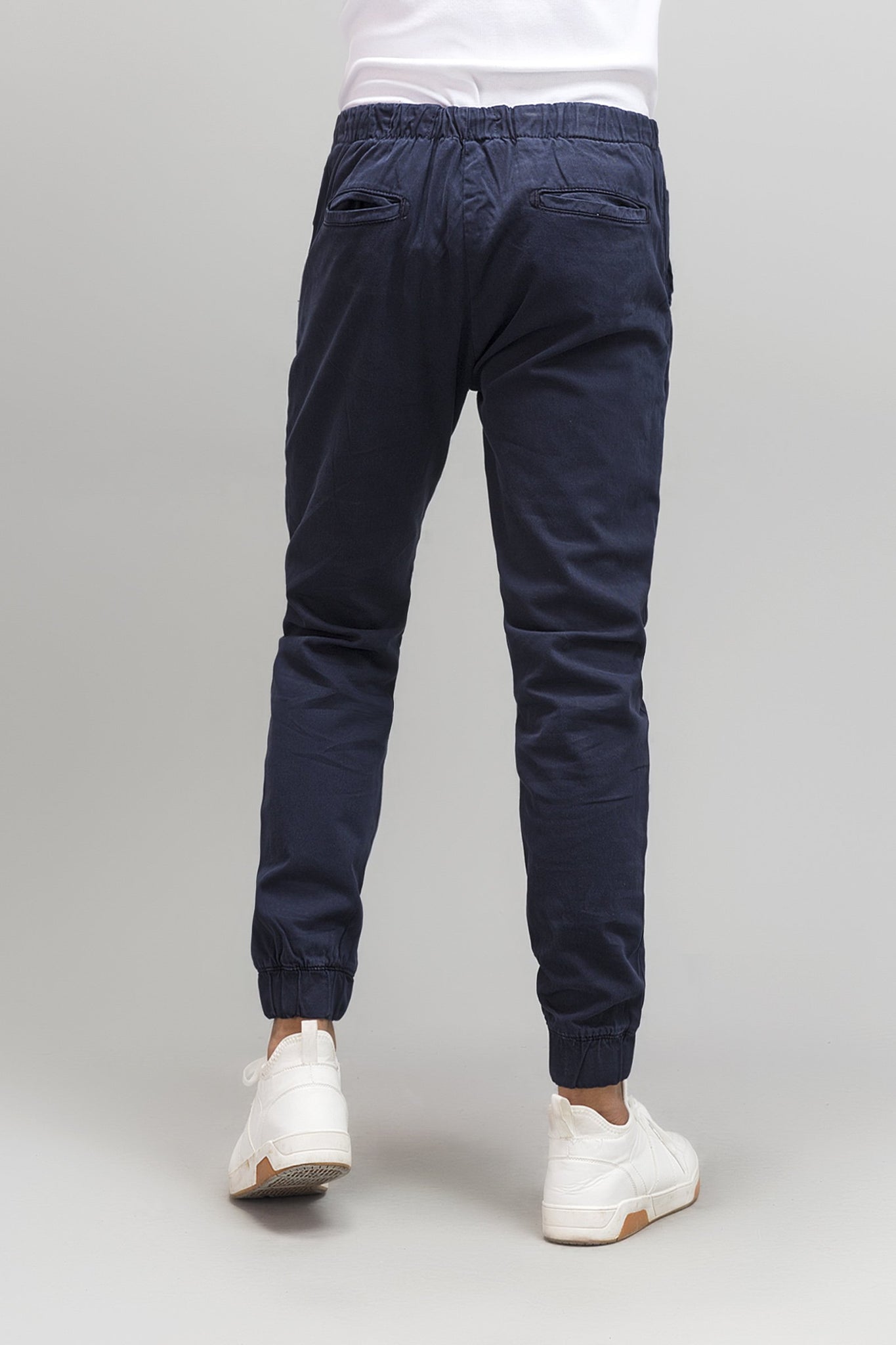 Cotton jogger pants with elastic waistband, four pockets and one fastening