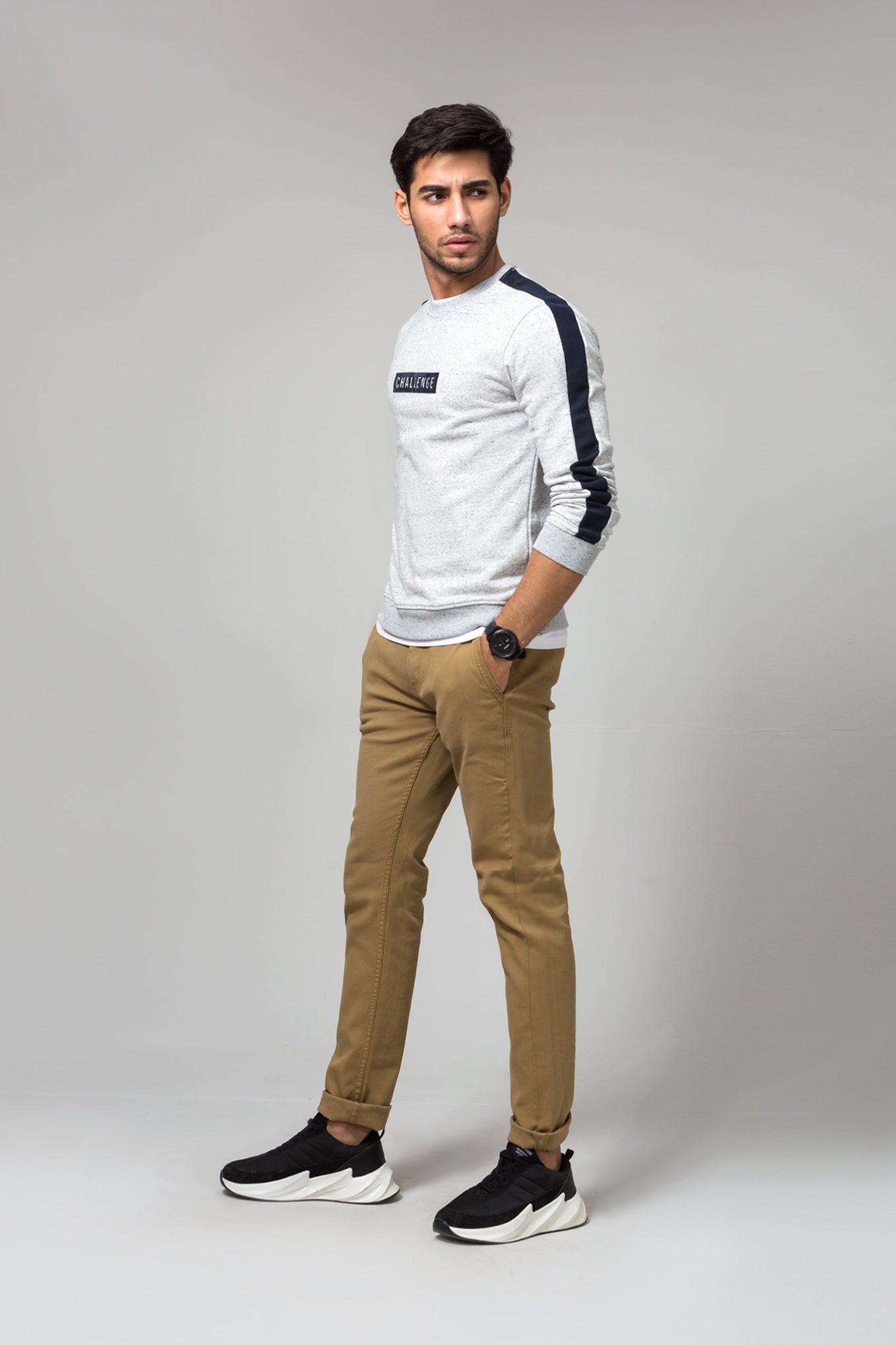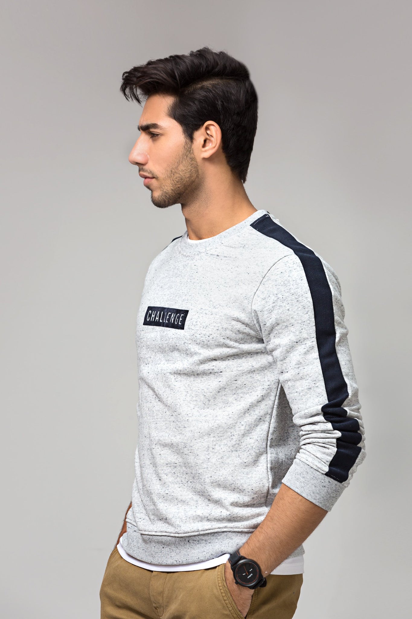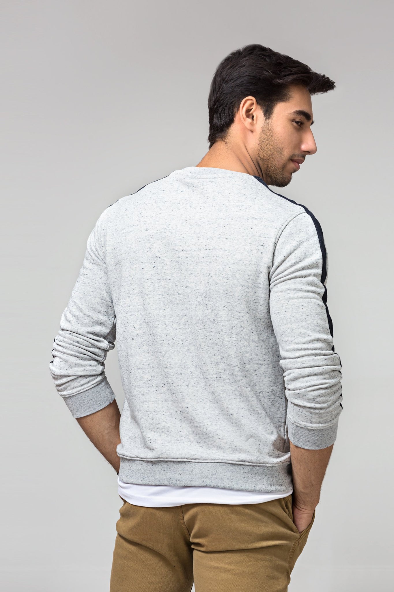 Crew neck sweatshirt with stripes full sleeves and ribbed hem